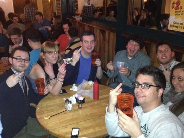 As more food was being ordered, several members including Eli Glazier, Devon Edwards, and Dennis McNamara rolled in at around 8:30. For the next four hours, we talked to strangers next to us, broke out into several random chants supporting New York Knicks hero Jeremy Lin, and mistakenly told a group of people at 8:45 that we would be leaving shortly (#SorryWereNotSorry)