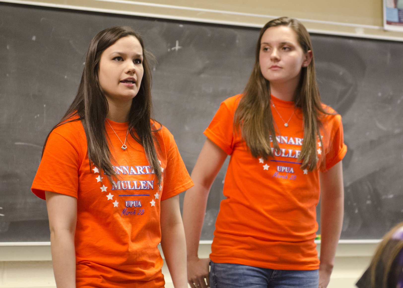 Ponter/Kristobak wasn't the only ticket to hold an introductory campaign meeting in Willard last night. Directly across the hall, Courtney Lennartz and Katelyn Mullen also held a kick off meeting to reveal their 11-page platform.