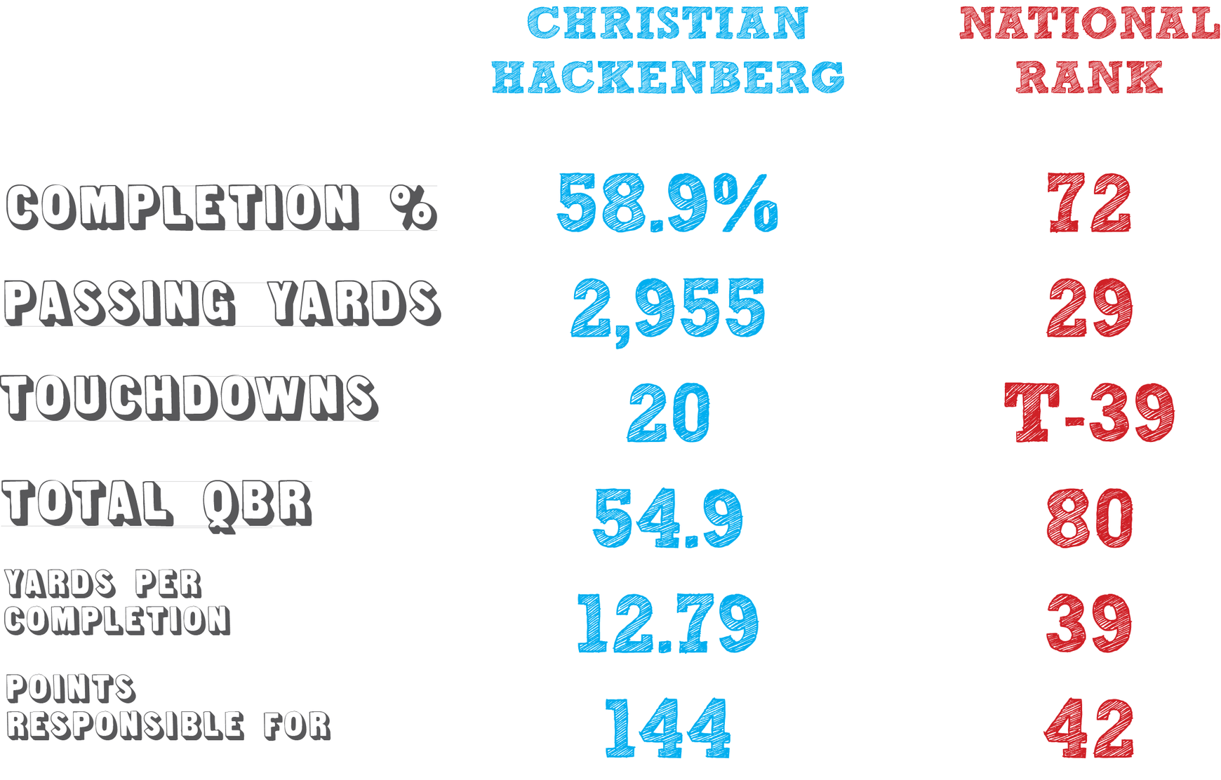 Let’s start by taking a look at how he compares to the rest of the nation in key passing statistics.