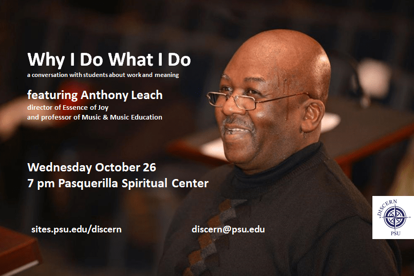 Come and hear from Dr. Anthony Leach, director of Essence of Joy, a world-renowned choral group on campus at Penn State. Join us to hear how Dr. Leach discovered his calling in music and how he continues to make decisions each day.