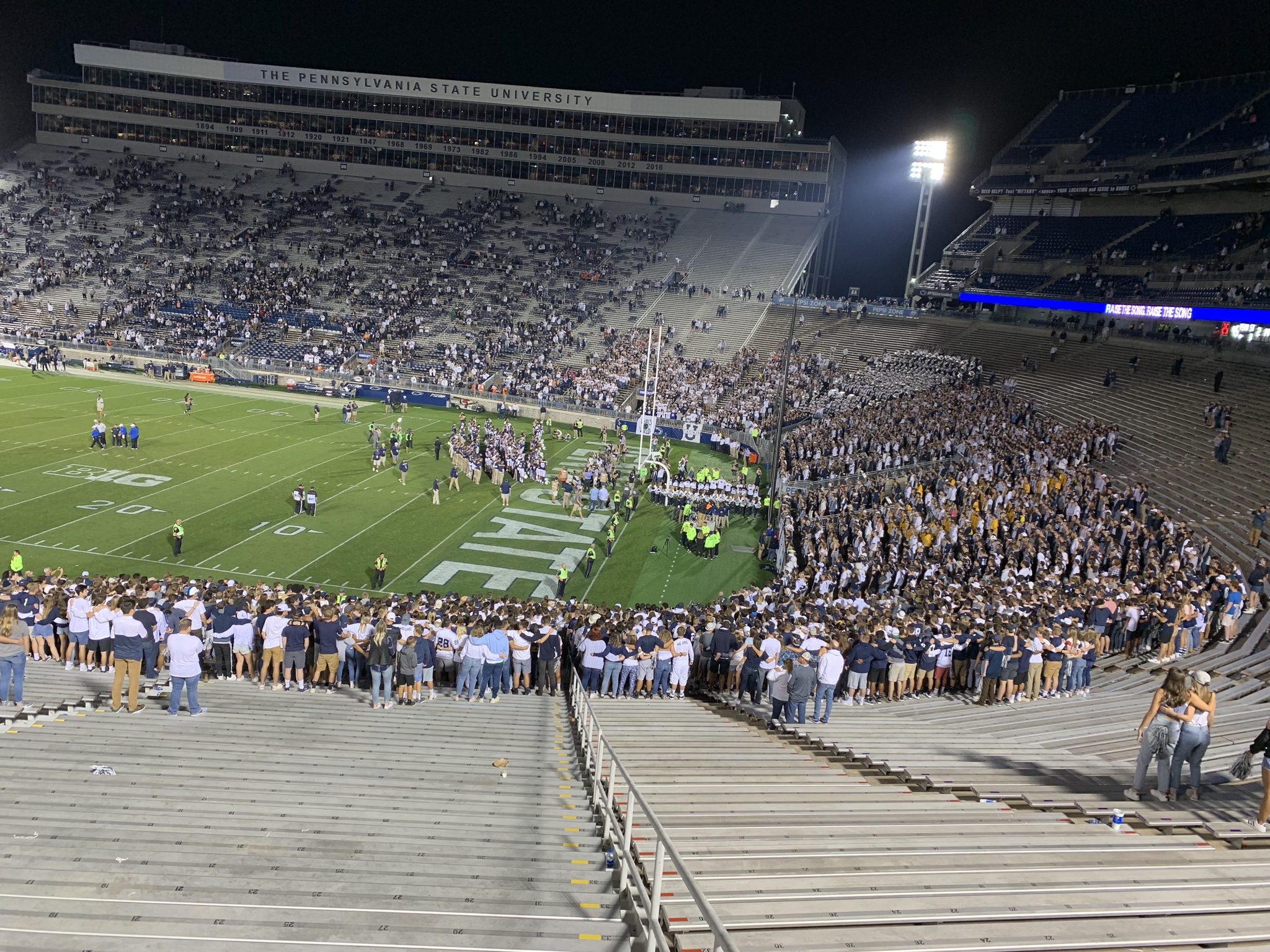 Buffalo punter Evan Finegan suffered a gruesome injury that silenced all of Beaver Stadium. Fans paid a quiet tribute to Finegan as he laid on the ground in pain before cheering him on as he was carted off the field. It was a touching moment of solidarity and support that best-captured the so-called “Happy Valley Hospitality” better than any tacky promotion on the big screen. Fans and players have also reached out to Finegan on social media since the injury.